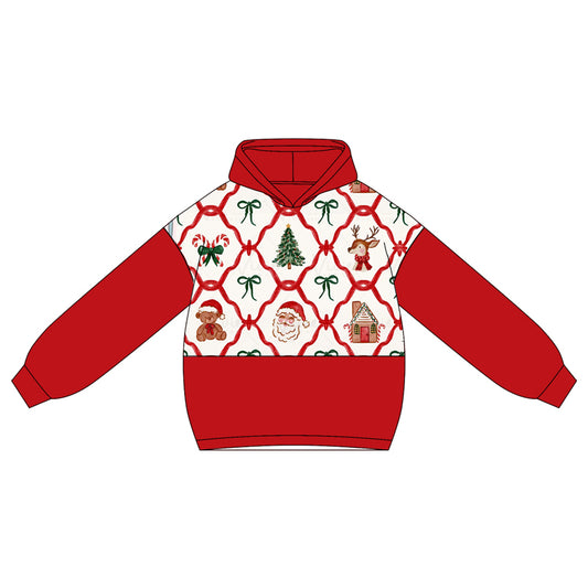 BT0048 Christmas Red Plaid & Leopard Print Kids Hoodie Top