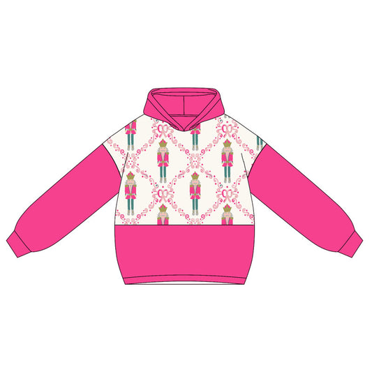 GT1043 Christmas santa gingerbread man bows hot pink hoodie long sleeve girls top