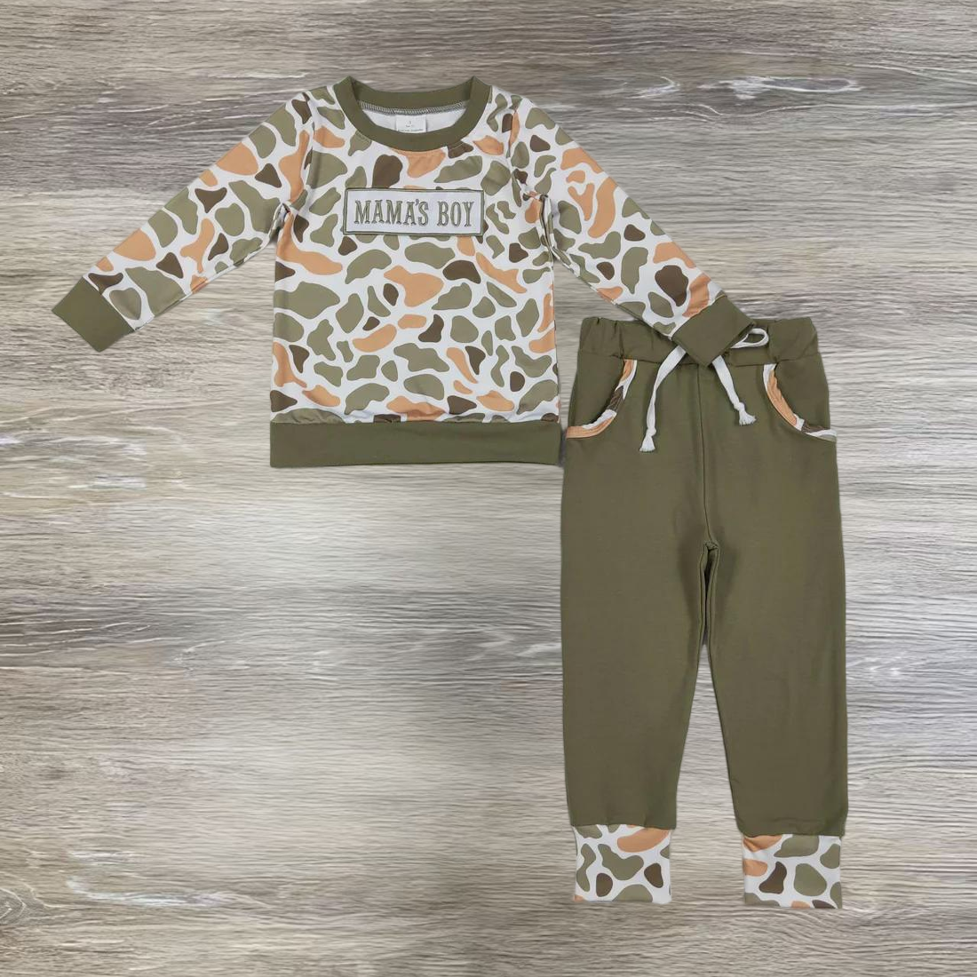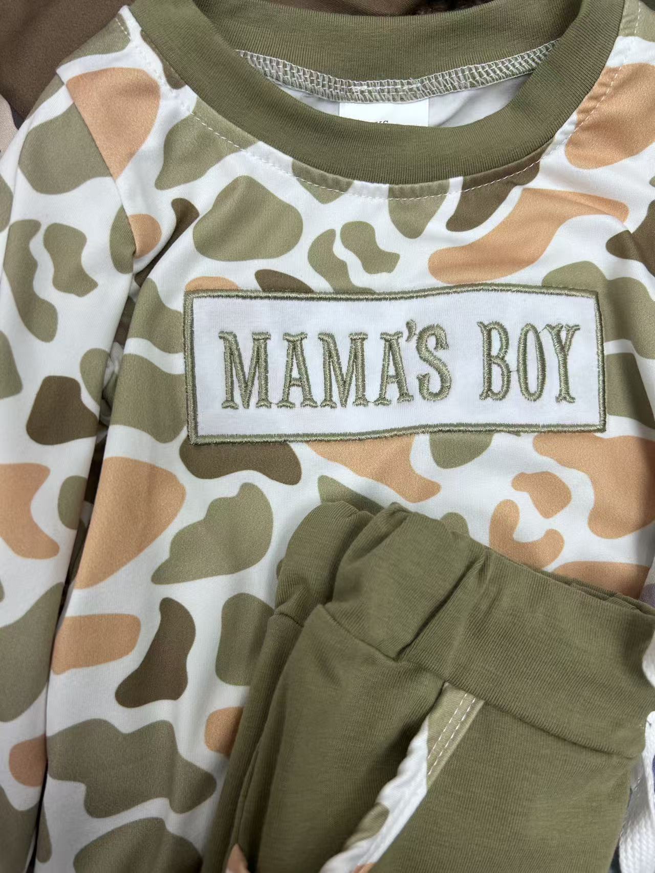Embroidery Mama's Boy Camo Boys Set RTS Sibling Clothes
