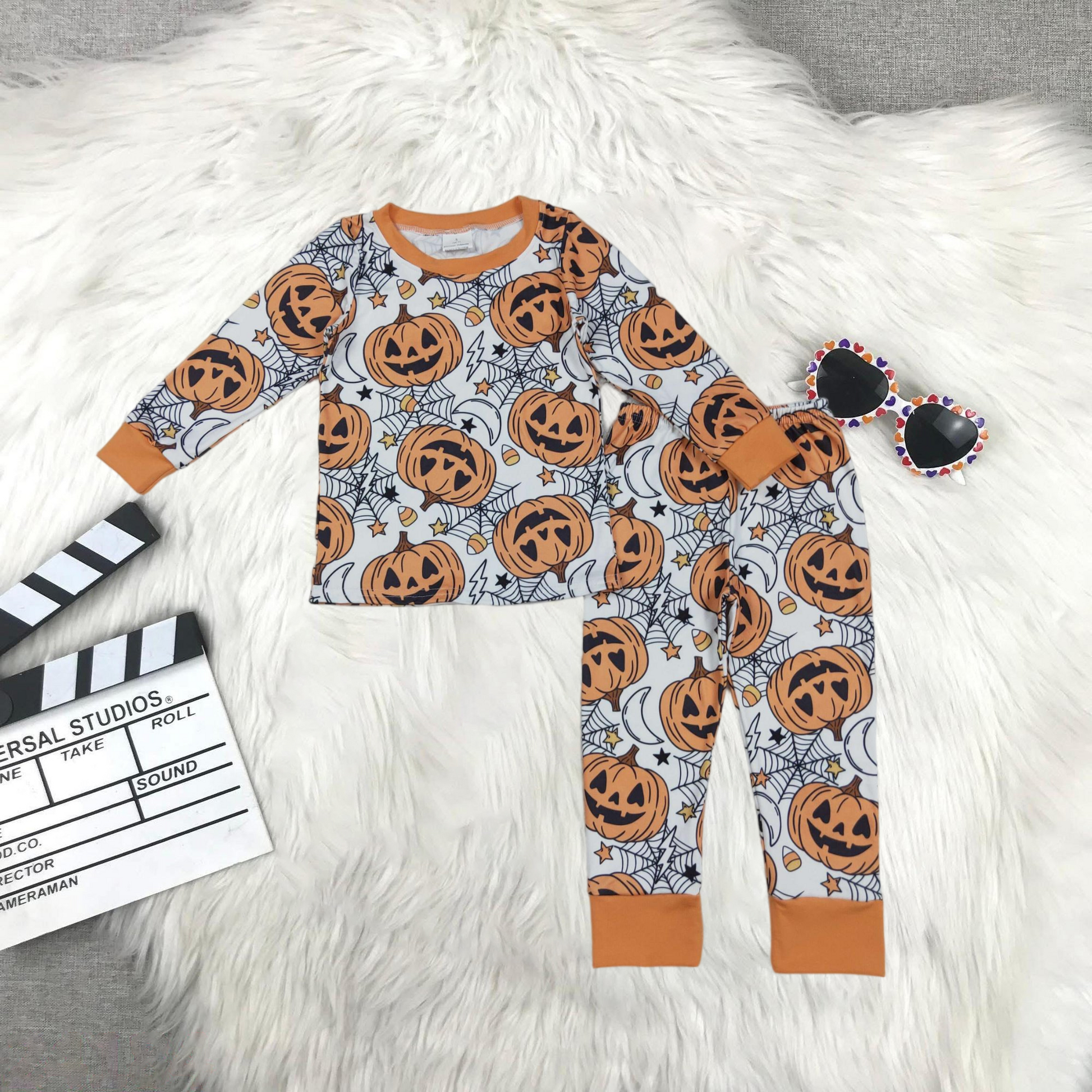 BLP1210 Halloween smile pumpkin orange long sleeve pants boys pajamas