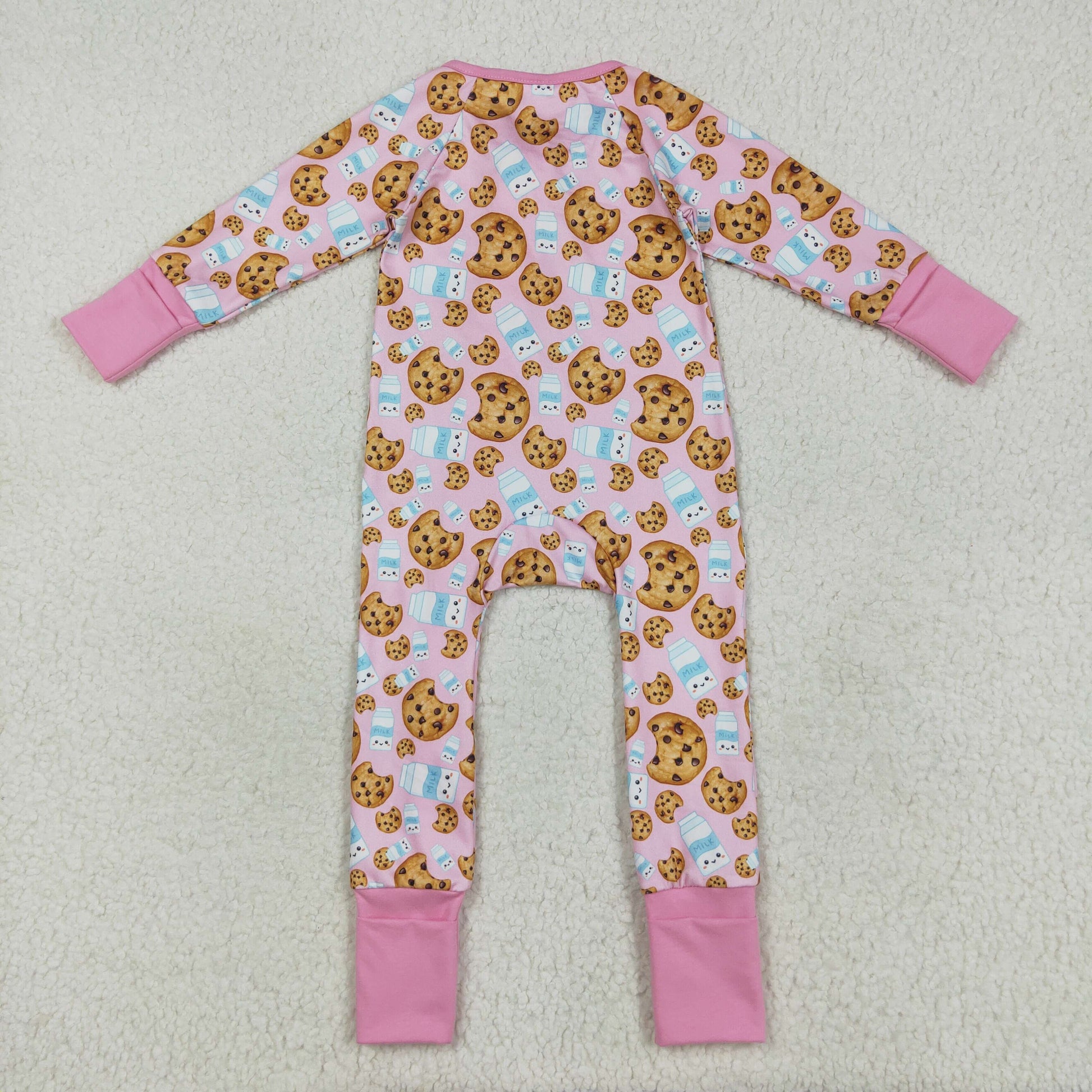 Custom moq 20 bamboo Christmas cookie milk pink long sleeve zipper girls romper