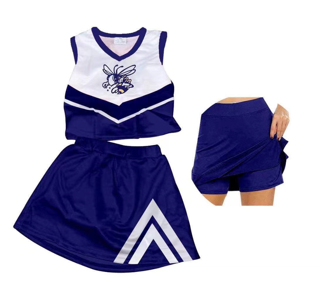 custom S 8.15 Dark blue sleeveless skirt girls set