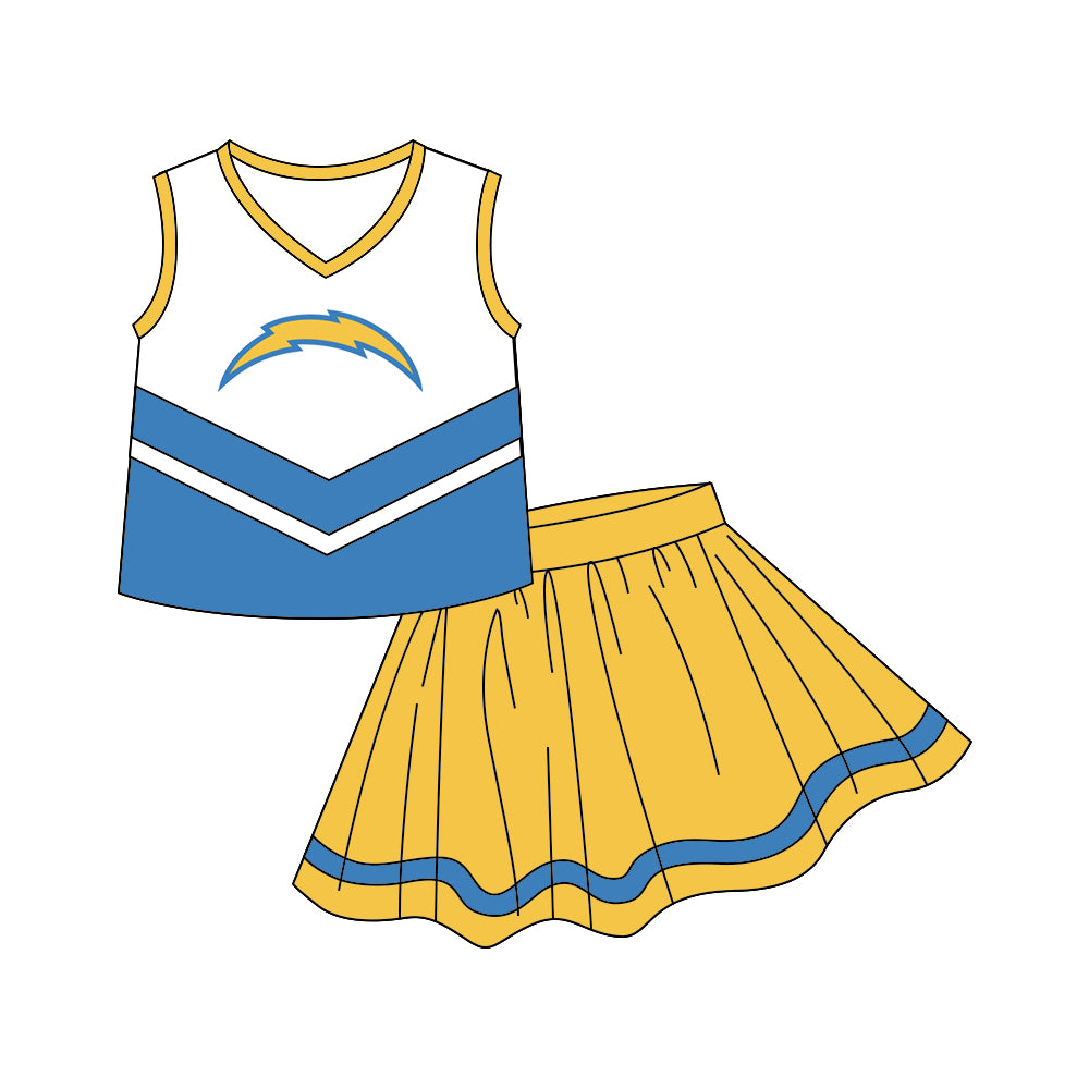 custom S 8.9 Blue & yellow sleeveless cheerleader dress