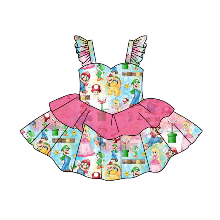 custom S 8.9 Superhero cartoon flutter sleeve girls dress