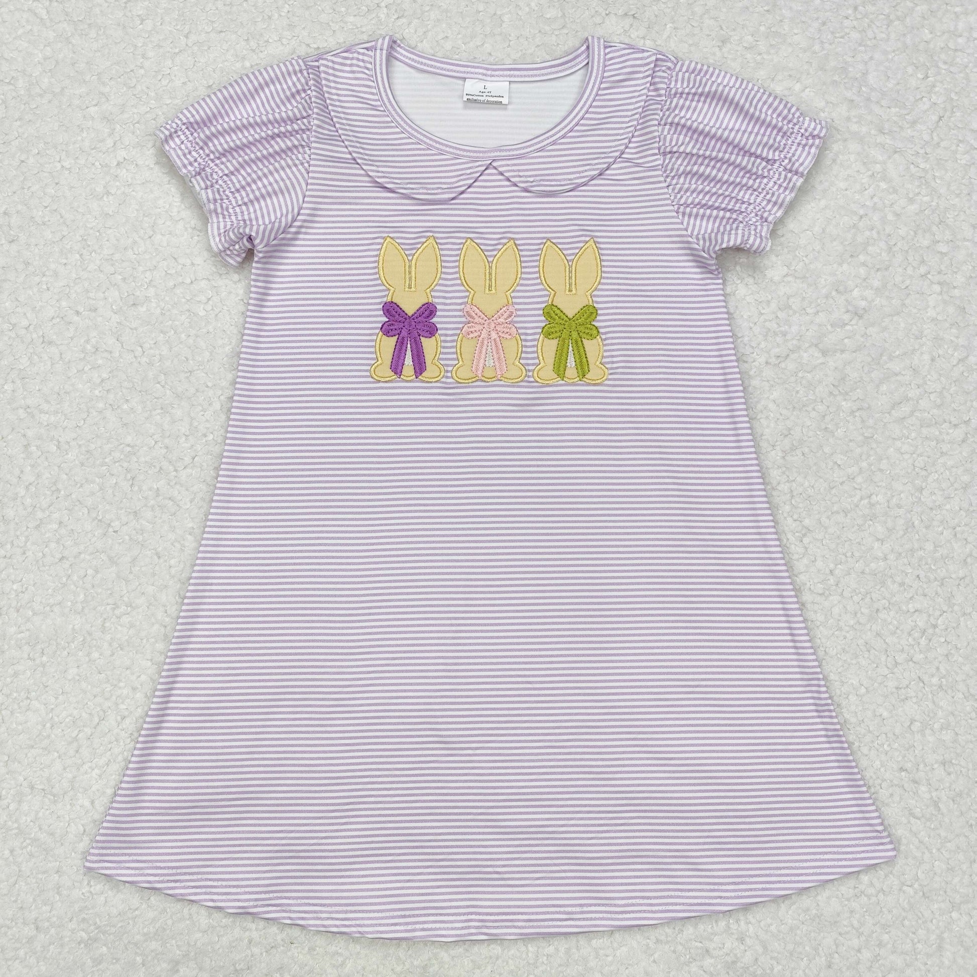 embroidery GSD1470 Easter bunny rabbit purple striped short sleeve girls dress