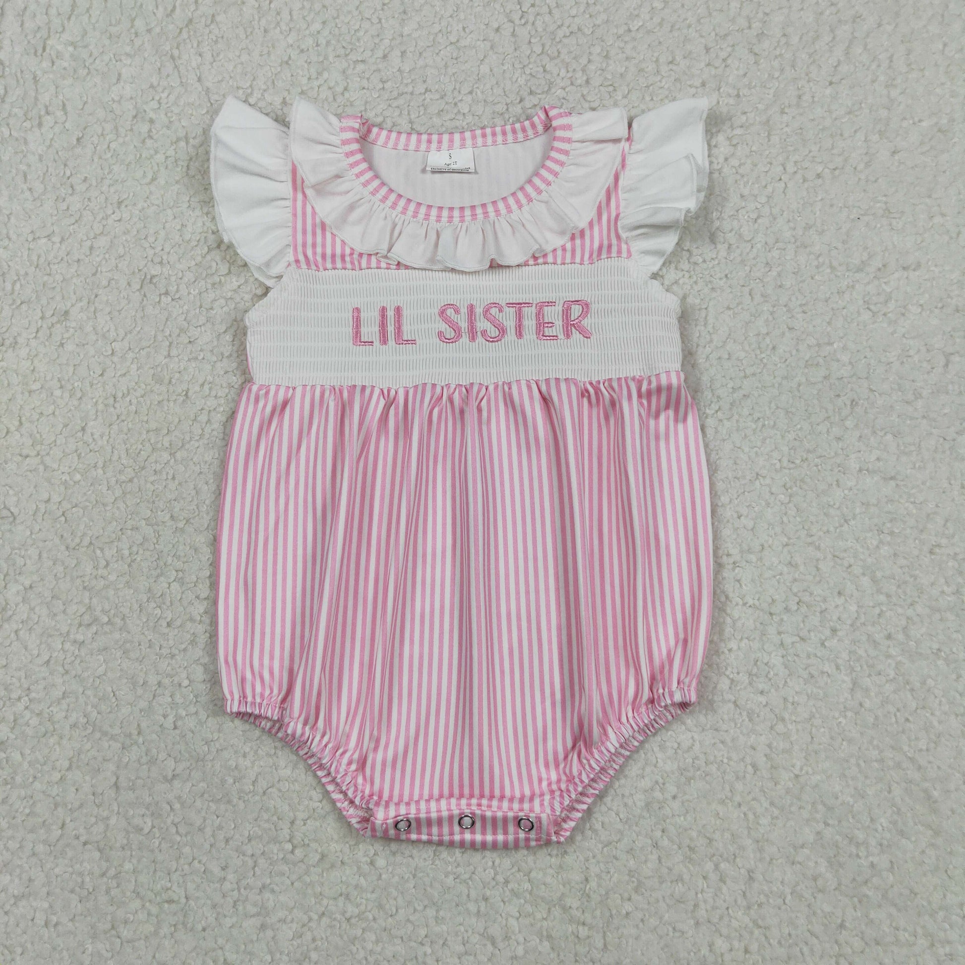 Embroidery Smocked SR3593 Lil Sister Pink Flutter Sleeve Girls Romper