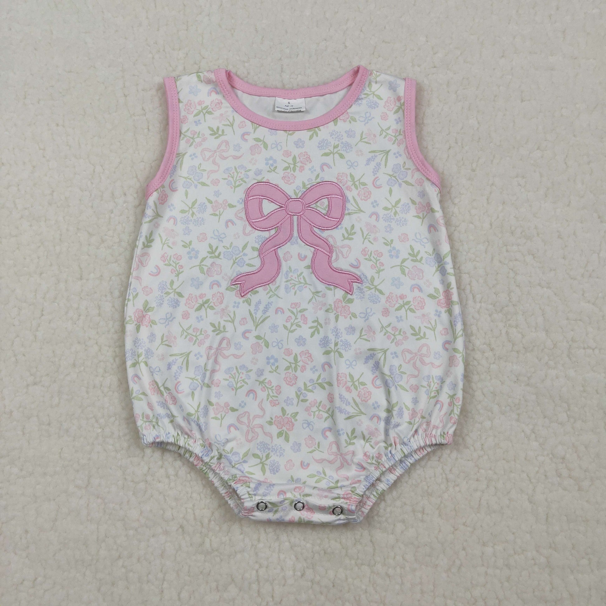Embroidery SR3727 Pink Bow Flowers Sleeveless Girls Romper