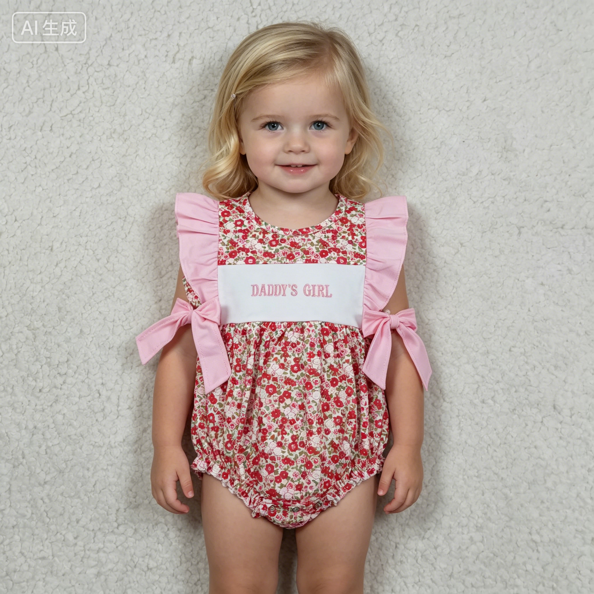 Embroidery SR3939 Mama's Girl Pink Flowers Flutter Sleeve Girls Romper