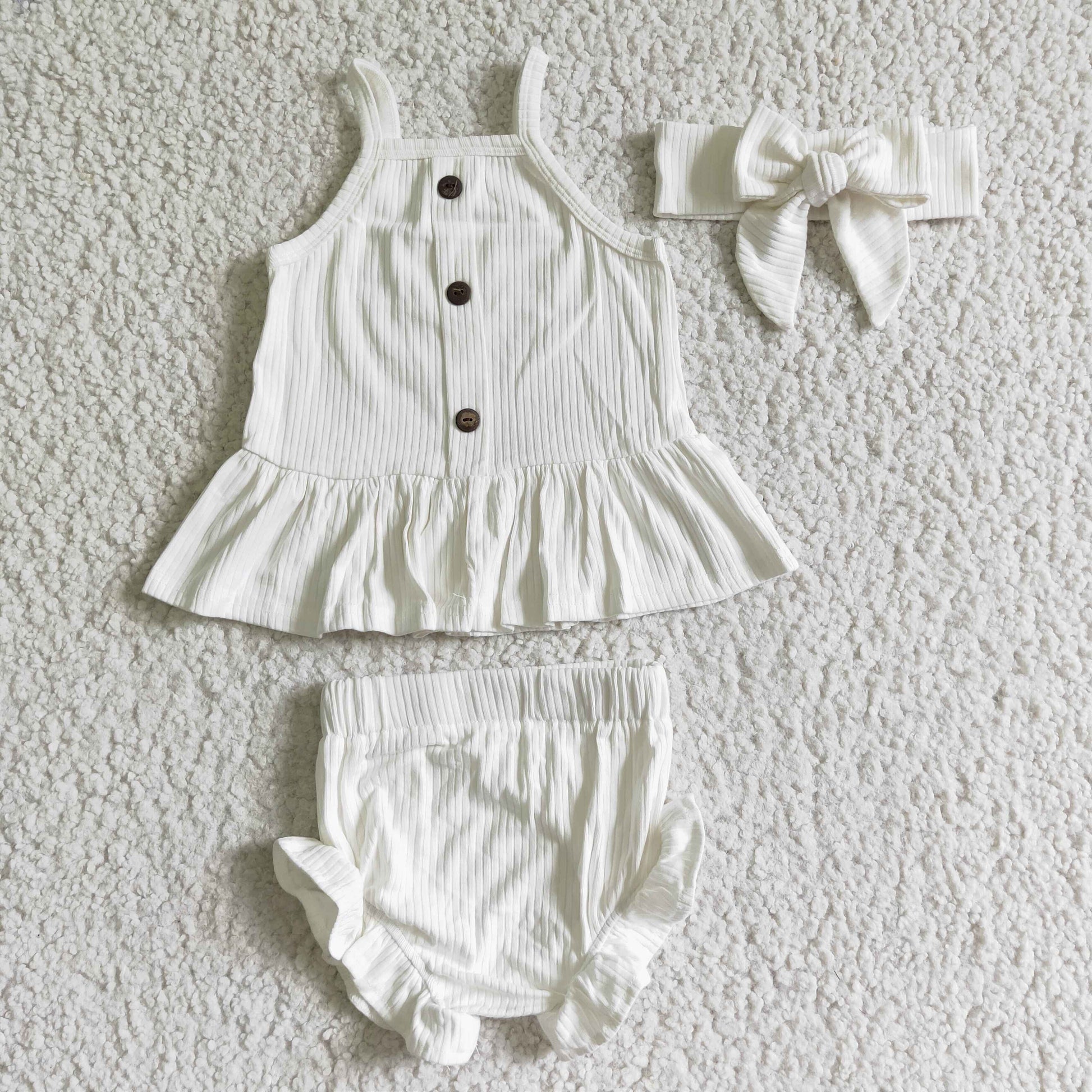 GBO0055 White Ribbed Girls Set