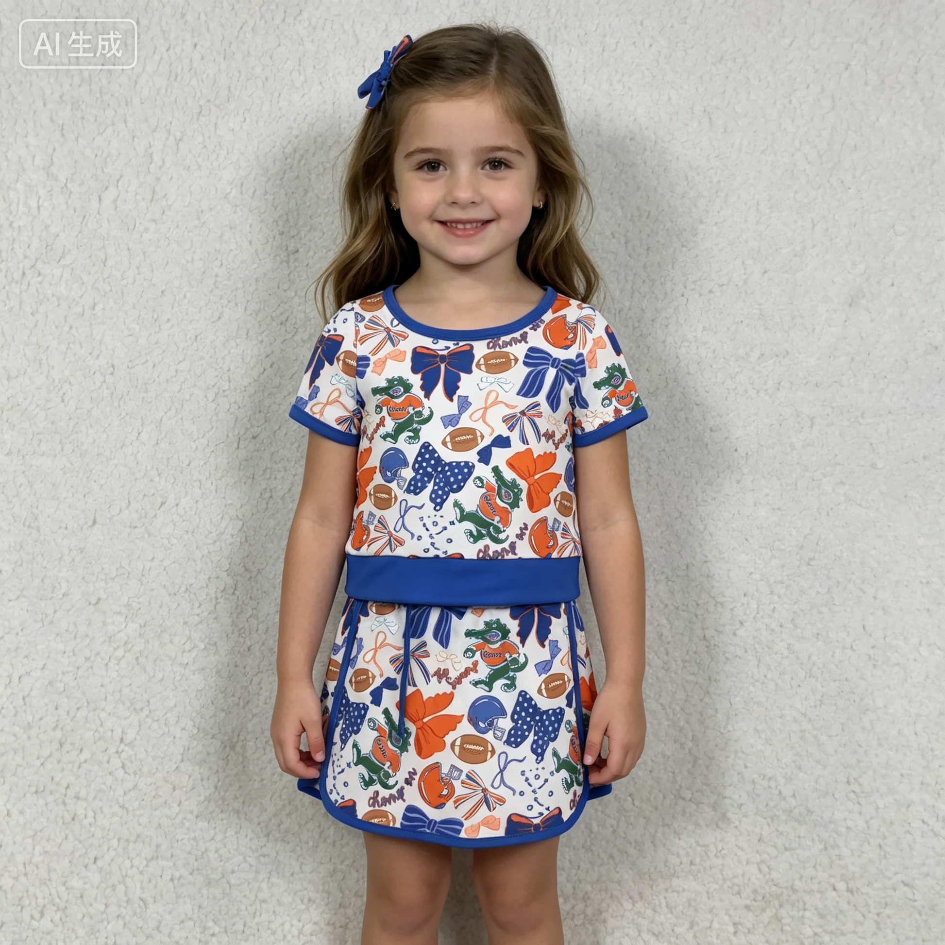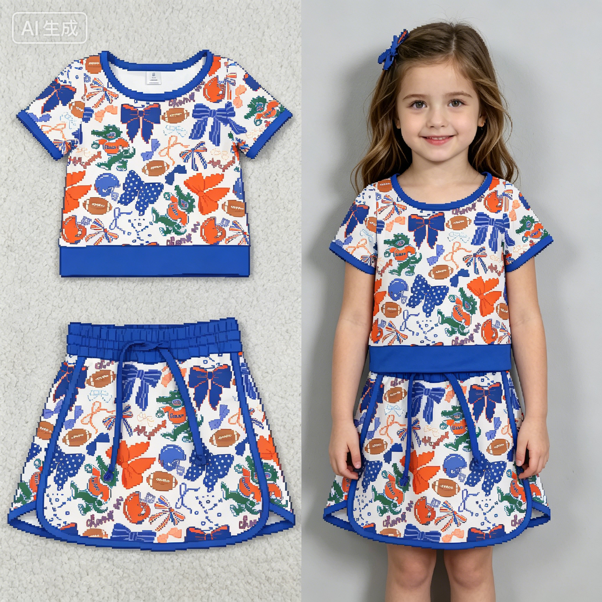 GSD3698 Yoga Football Item Crocodile Bows Purple Sleeveless Skorts Girls Set