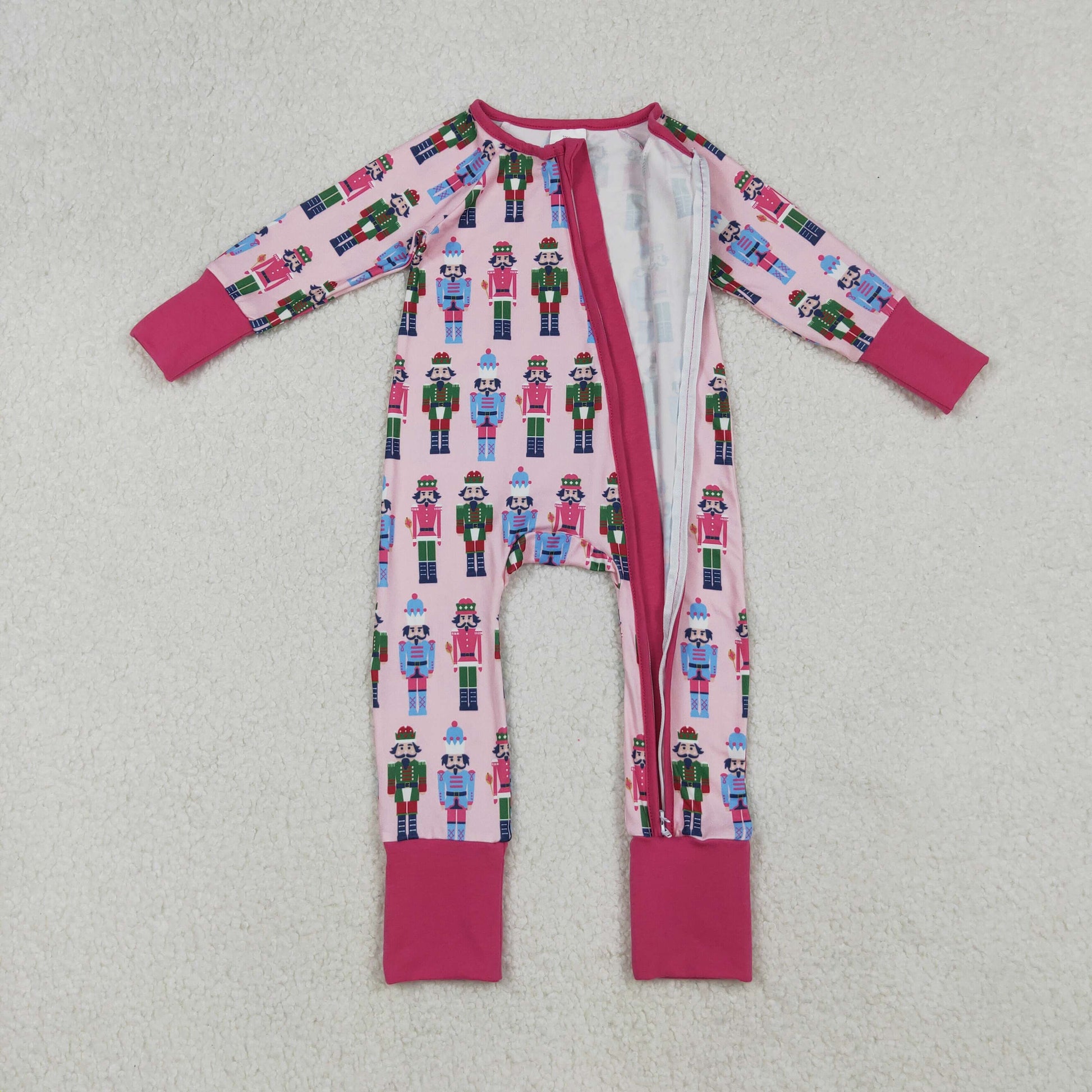 LR2598 Christmas soldier pink zipper long sleeve girls romper