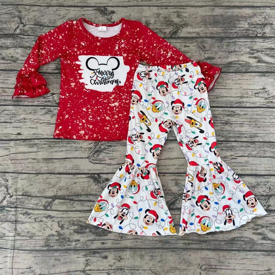 Merry Christmas Red Bleach Design Long Sleeve Cartoon Children Outfits