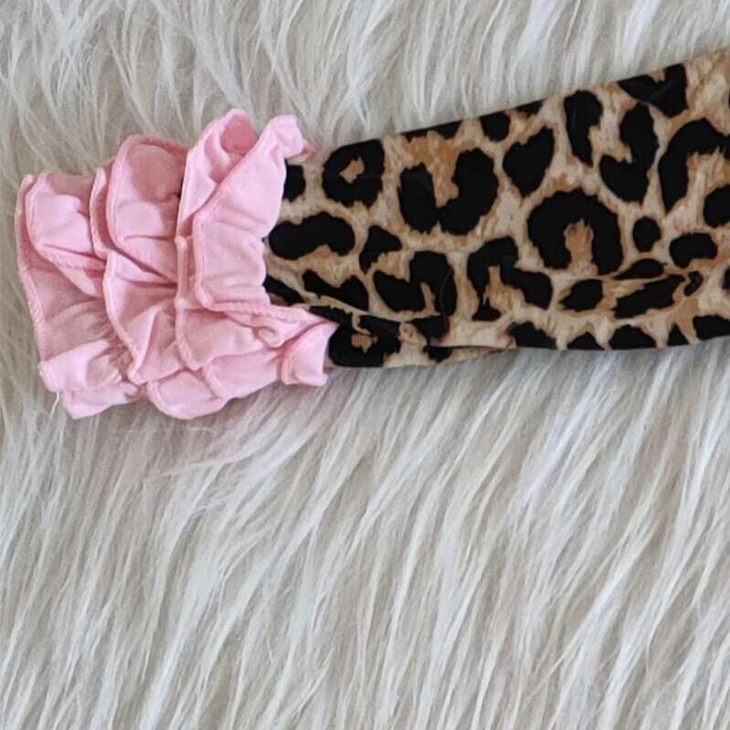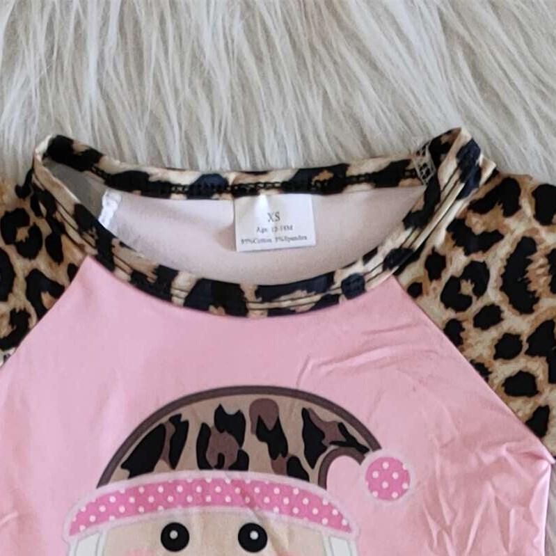 Pink Christmas Santa Leopard Print Ruffles Newborn Romper