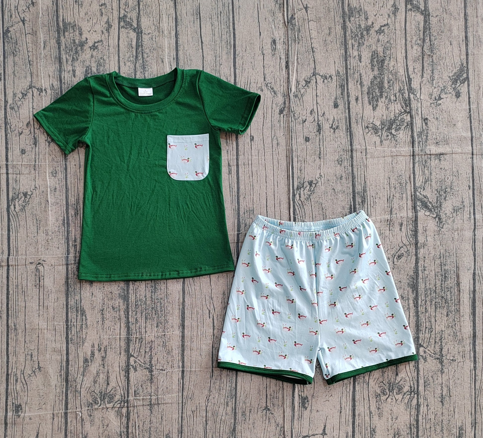 preorder Samples BSSO1899 Hunting Mallard Green Pocket Short Sleeve Shorts Boys Set