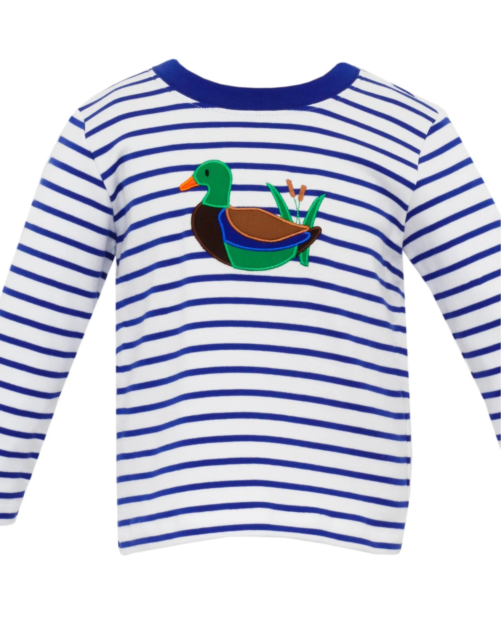 preorder BT0701 mallard duck navy blue striped long sleeve boys top