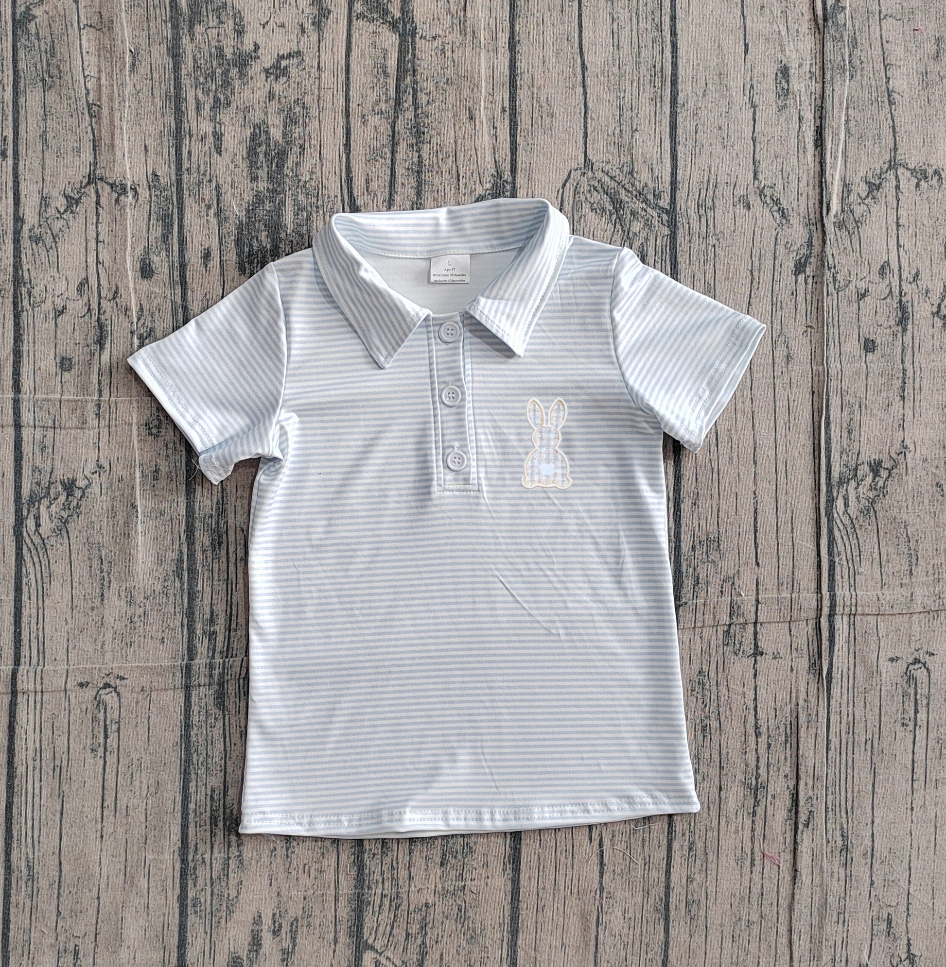 preorder Samples BT1708 Easter Rabbit Blue Striped Short Sleeve Boys Top