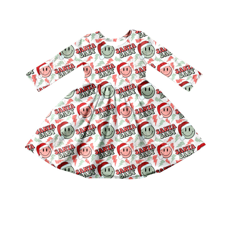 preorder GLD0234 Christmas Santa Baby Smile Girls Long-sleeve Dress