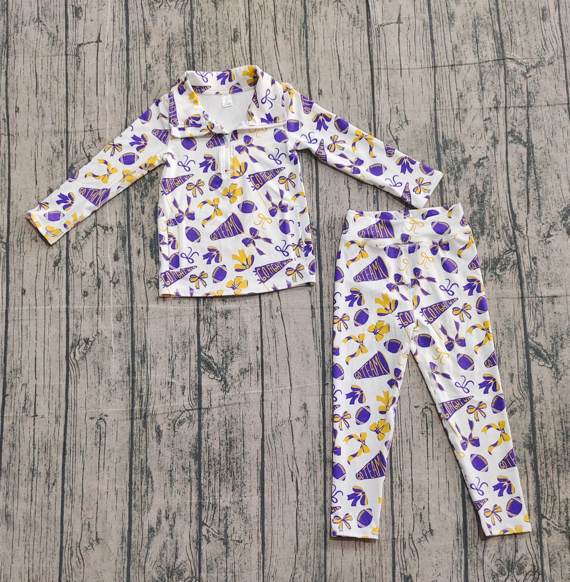 preorder samples GLP2762 yoga go fight cheer purple gold bows zipper long sleeve pants girls set