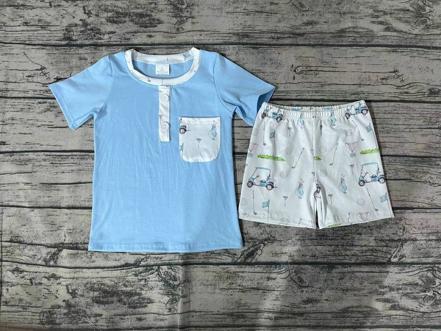 Preorder BSSO0615 Golf car blue pocket short sleeve shorts boys set