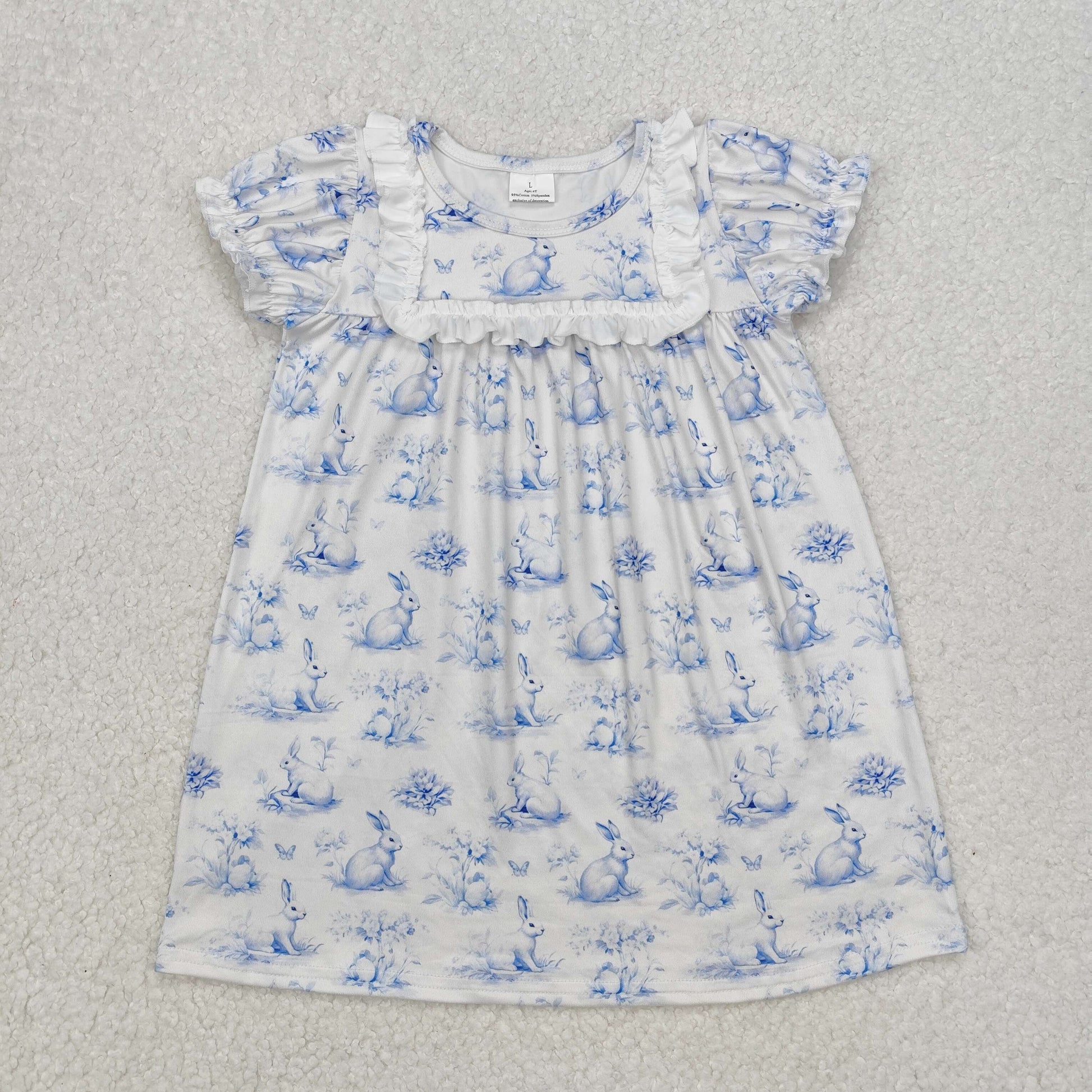 GSD1531 Easter bunny rabbit blue short sleeve girls dress