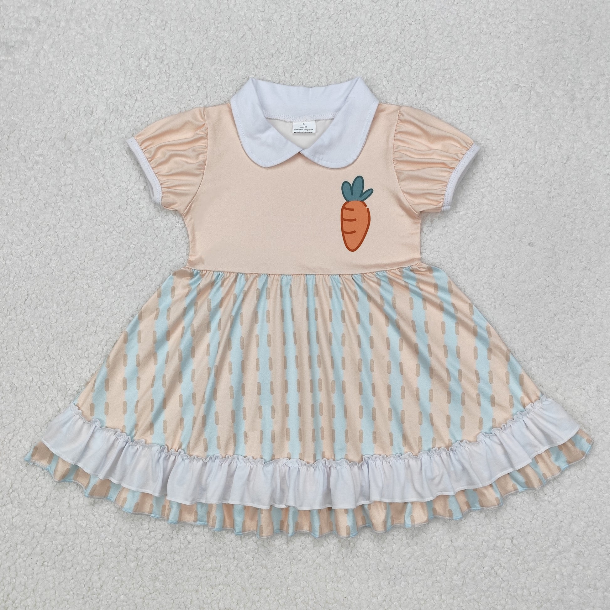 GSD1566 Easter carrot orange blue striped short sleeve girls dress
