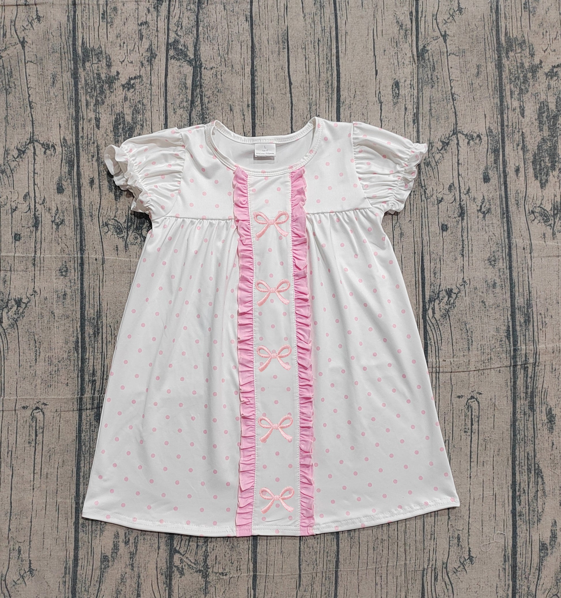 preorder Samples GSD3312 Pink Bows Dot Short Sleeve Girls Dress