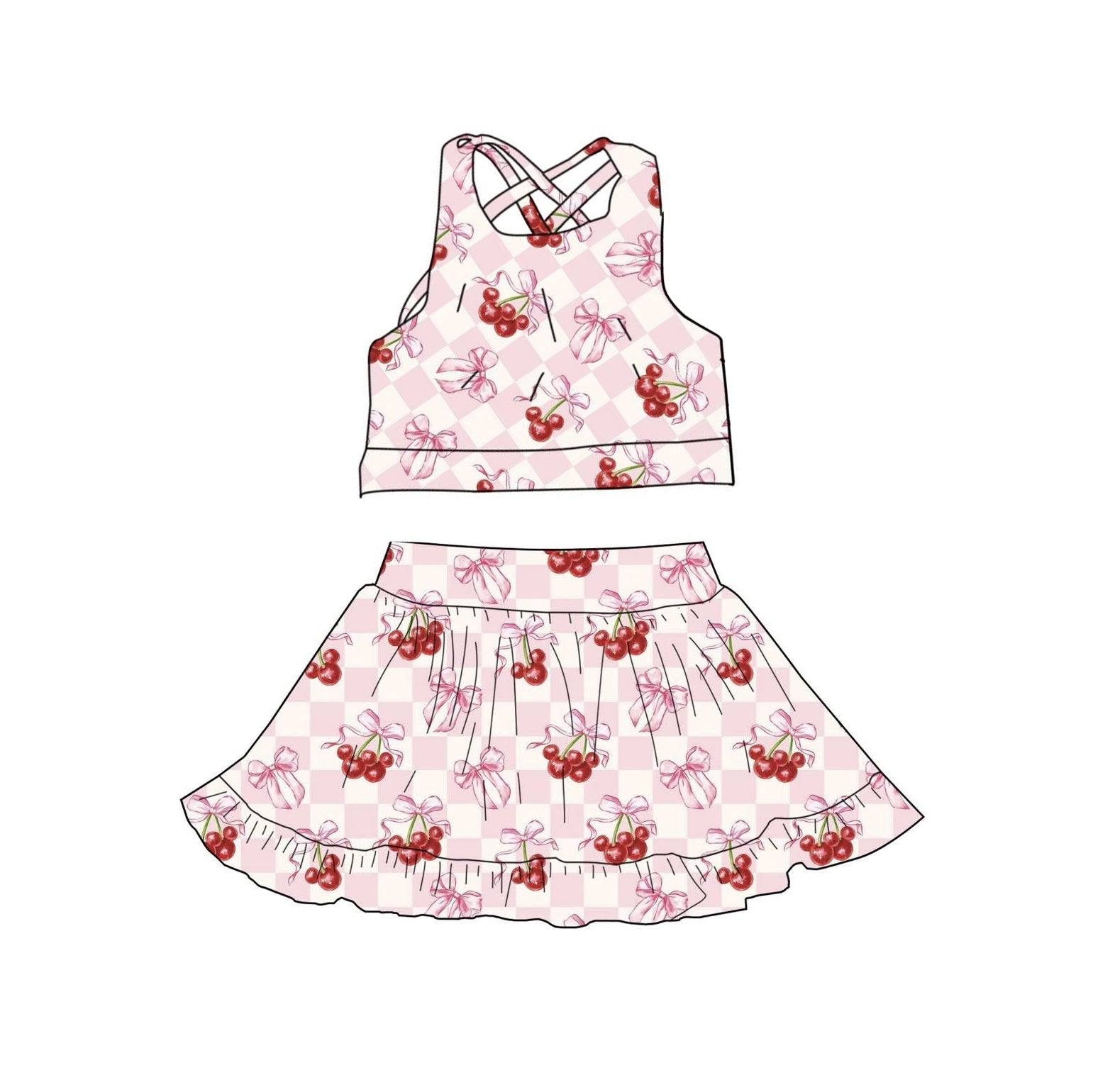preorder GSD3379 Yoga Pink Bows Cherry Sleeveless Skorts girls Set