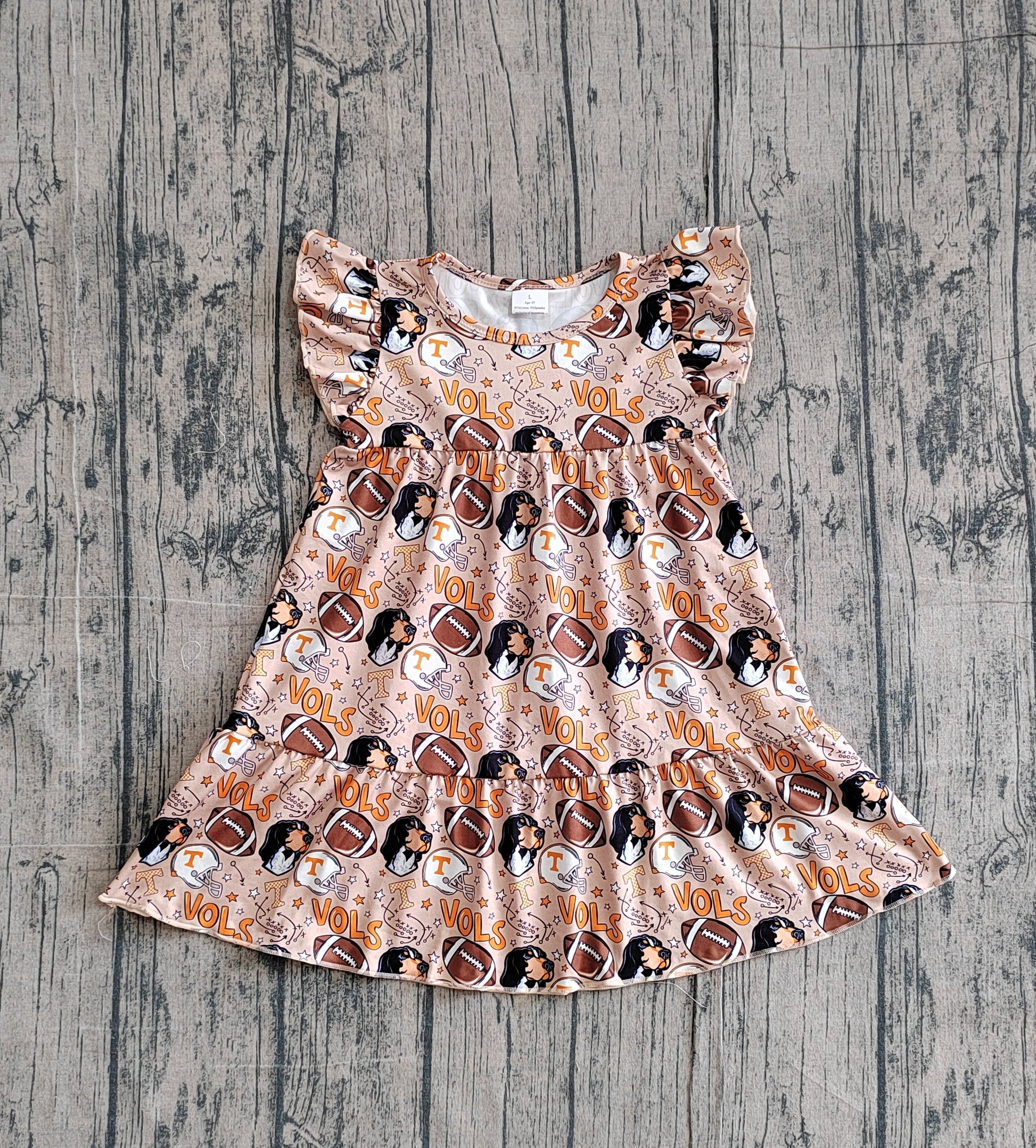 preorder Samples GSD3703 Football Item Vols Dog Brown Flutter Sleeve Girls Dress