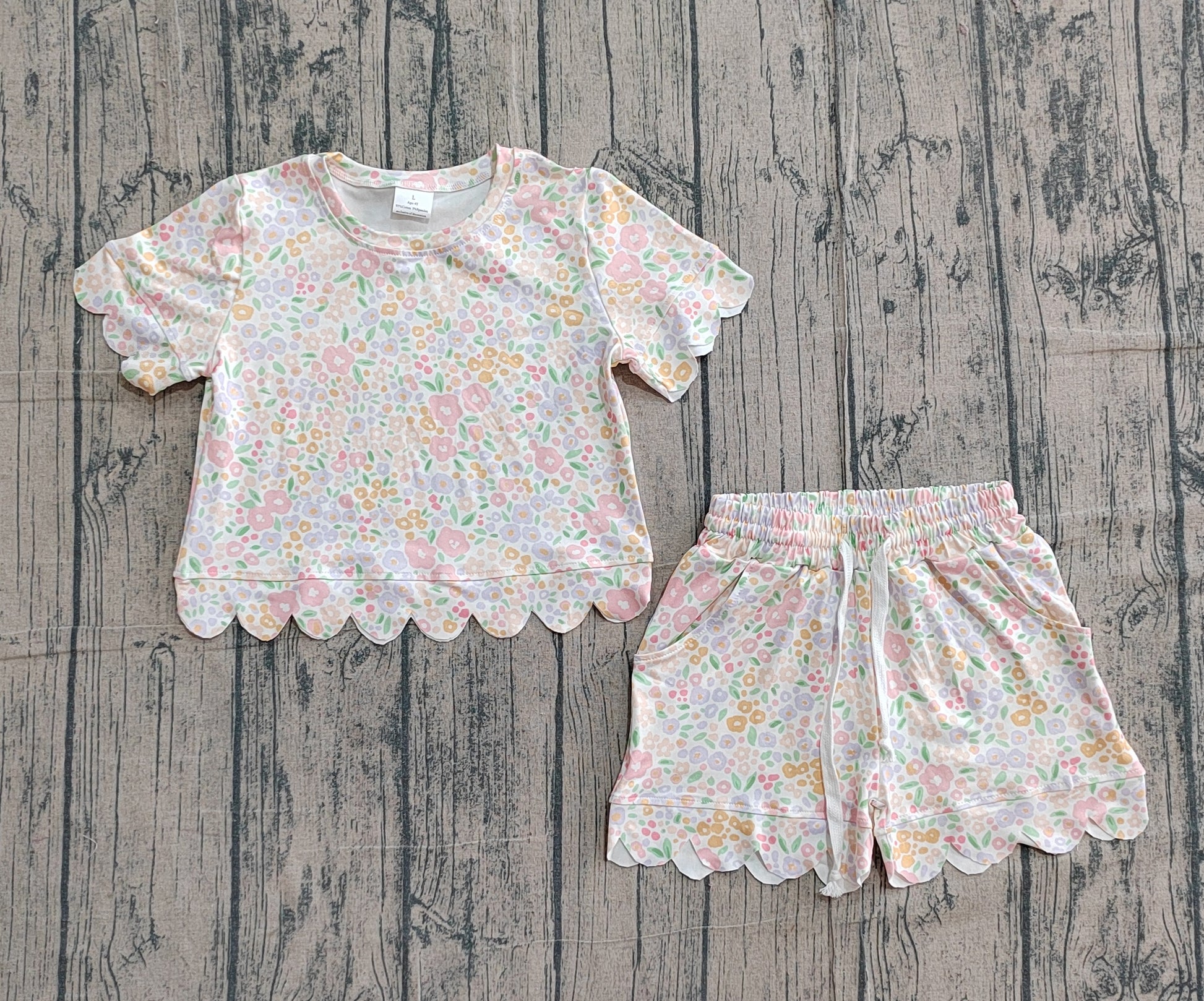 preorder Samples GSSO3273 Colorful Flowers Short Sleeve Shorts Girls Set