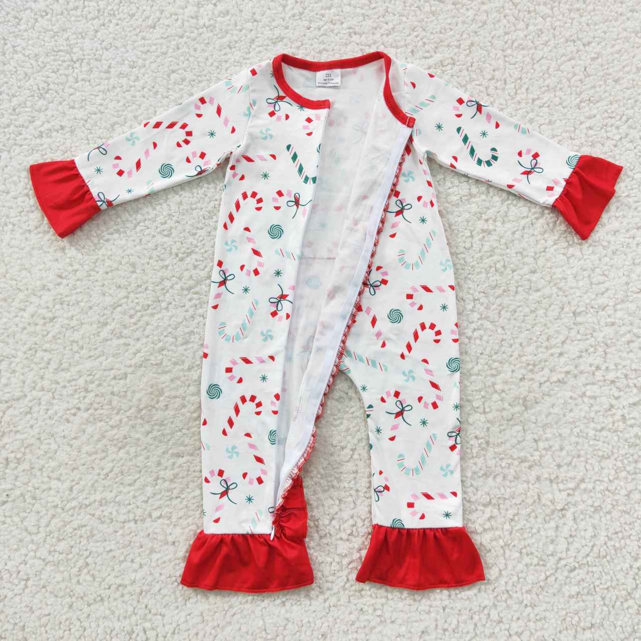 LR0501 Christmas Candy Cane Long Sleeve Girls Romper