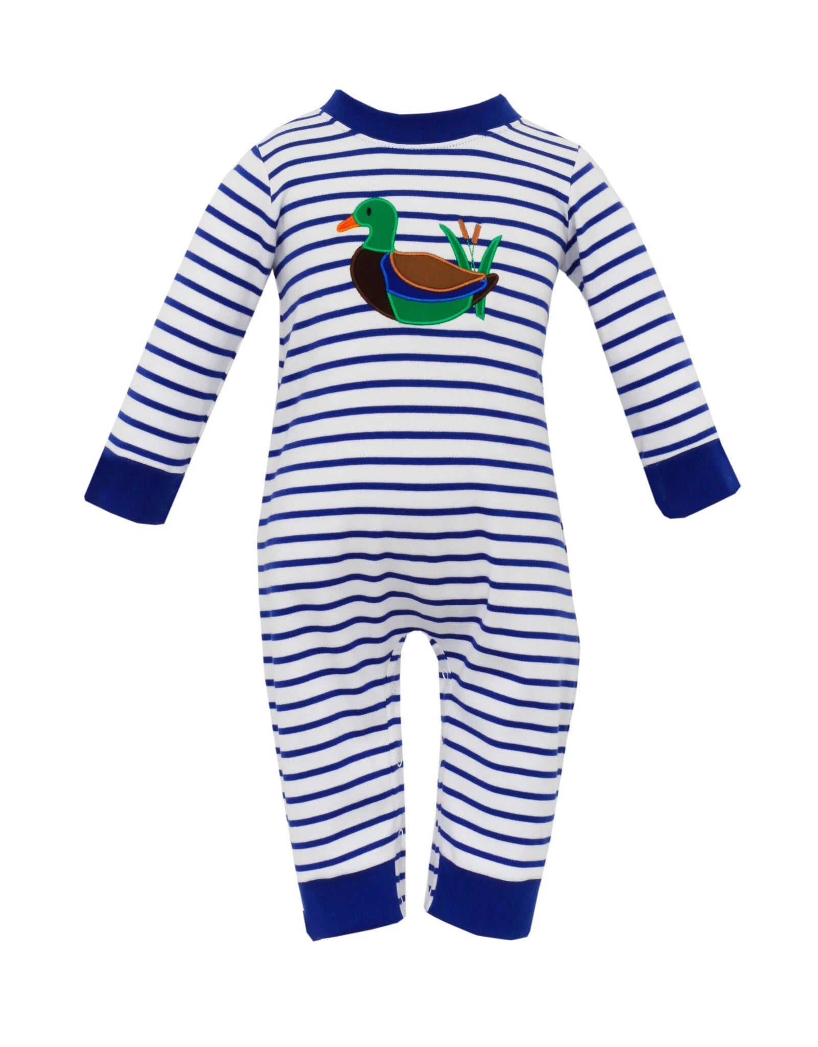 preorder LR0985 mallard duck navy blue striped long sleeve boys romper