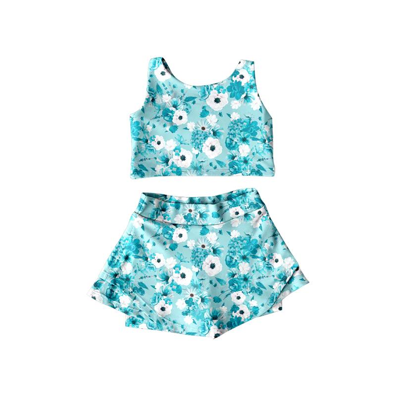 preorder S0407 little flowers blue 2pcs girls tennis clothes sports wear