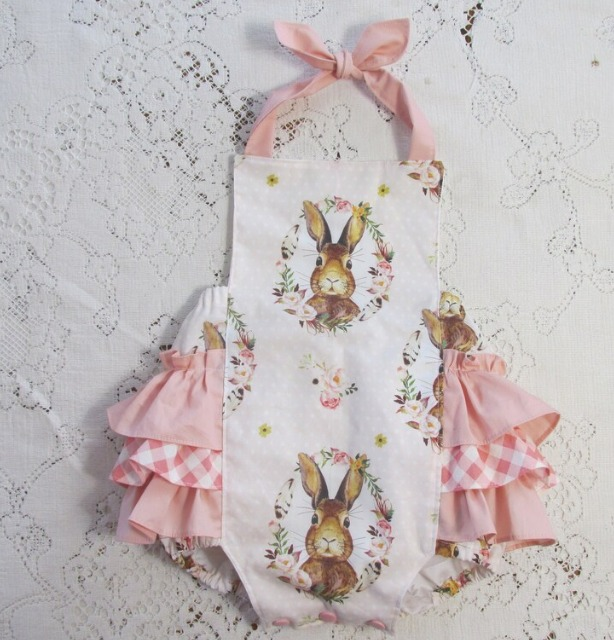preorder SR0809 Easter Rabbit Pink Sleeveless Girls Romper