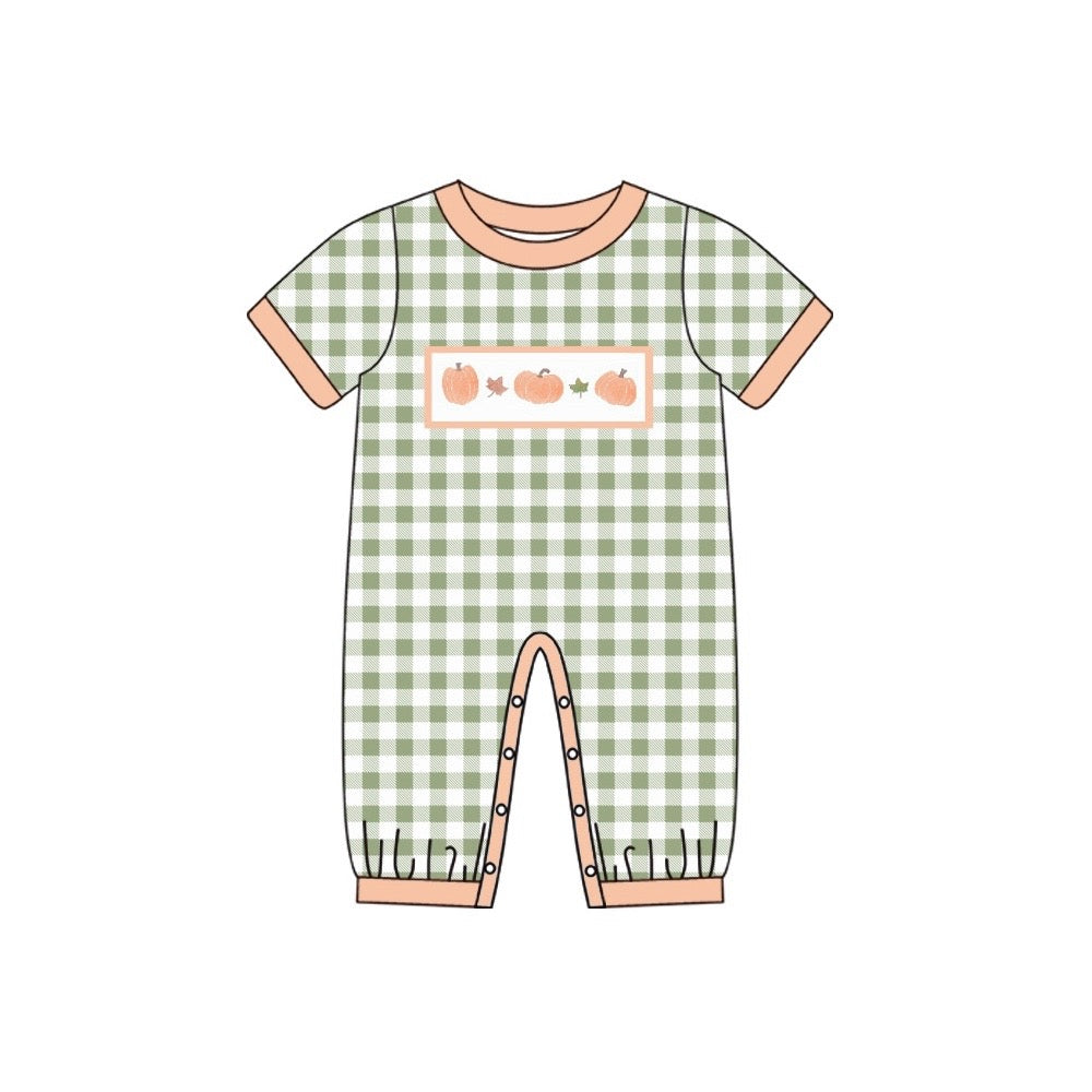 preorder SR1918 Autumn full pumpkin short sleeve green checkered boys romper
