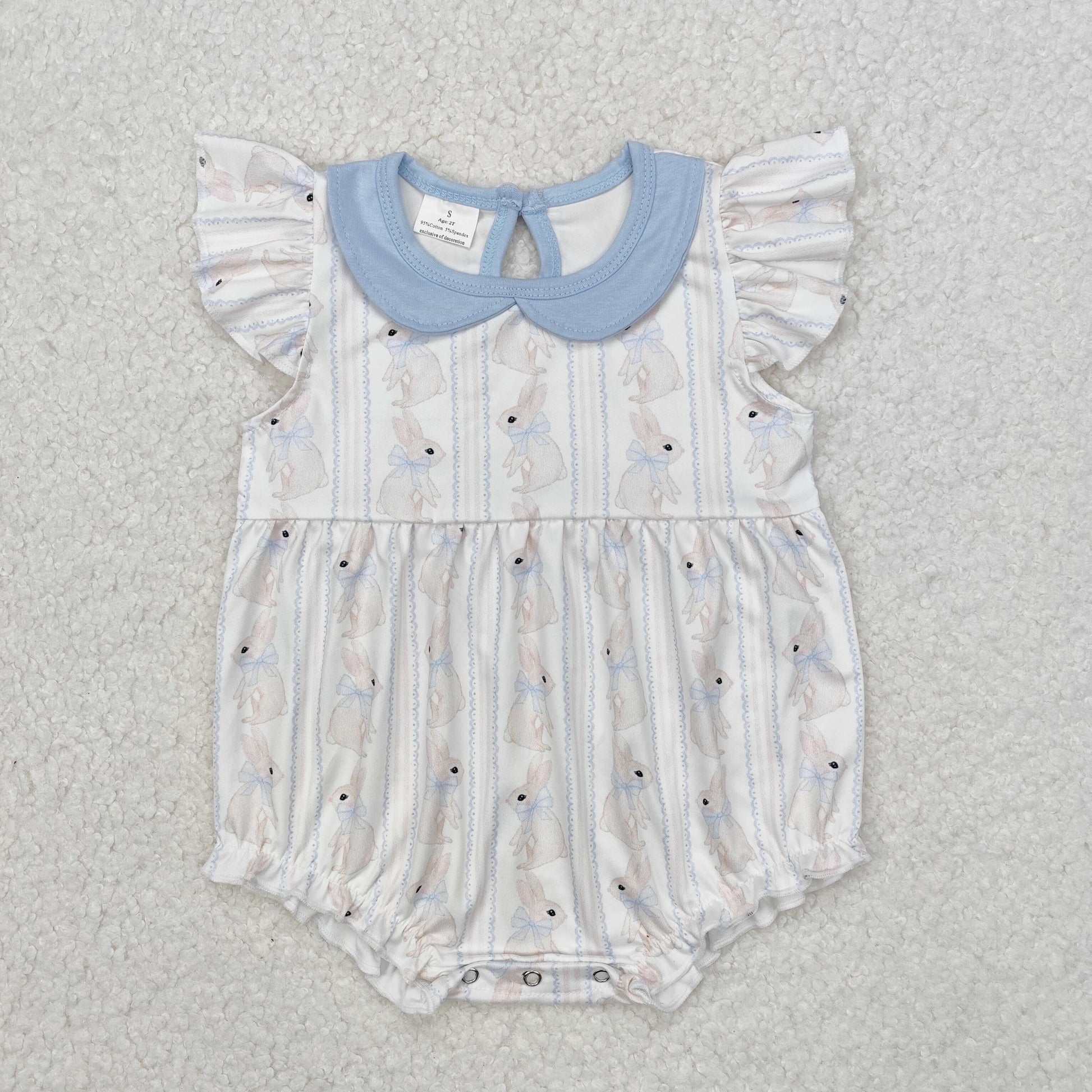 SR2132 Easter bunny rabbit blue flutter sleeve girls romper