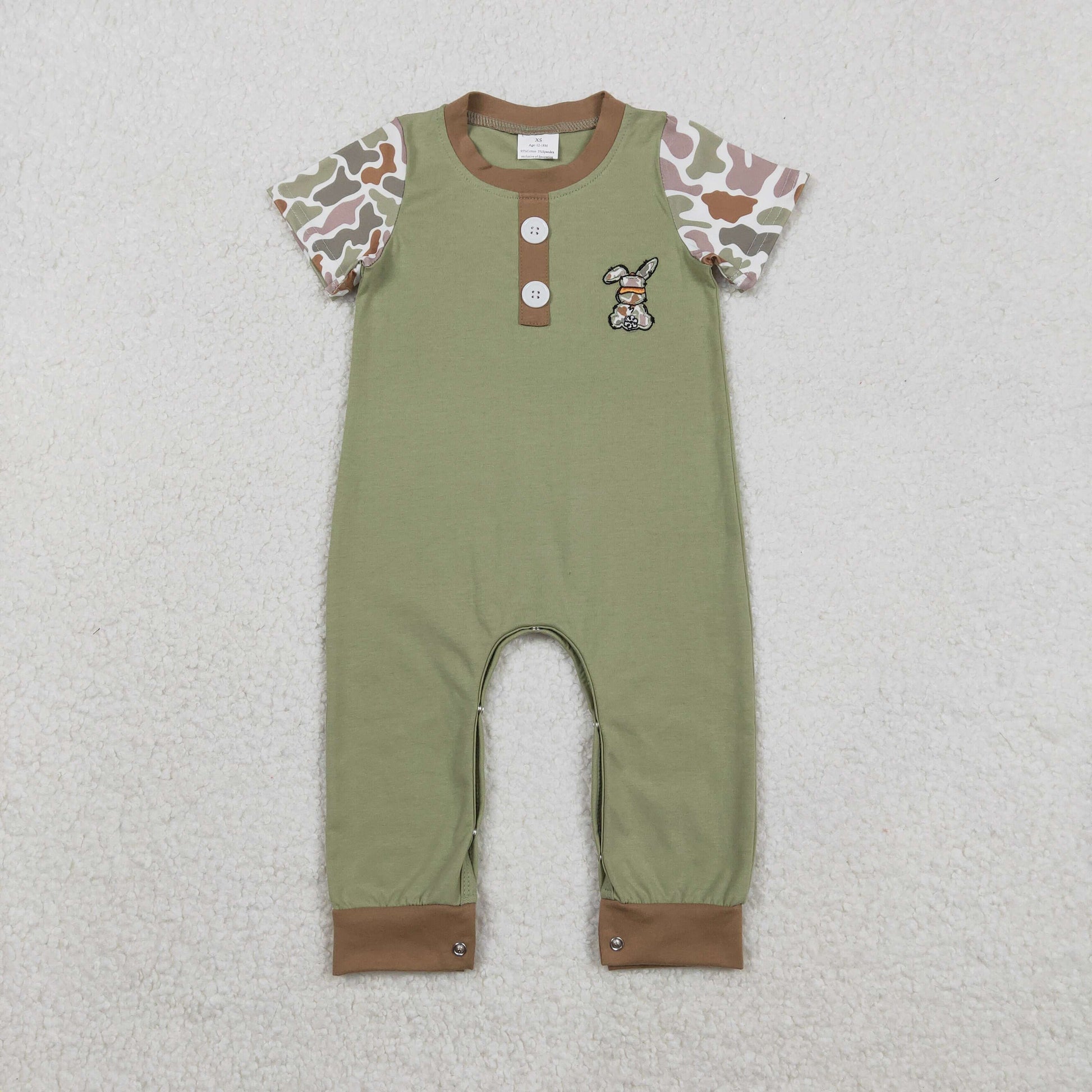 embroidery SR3258 Easter bunny rabbit camo short sleeve boys romper