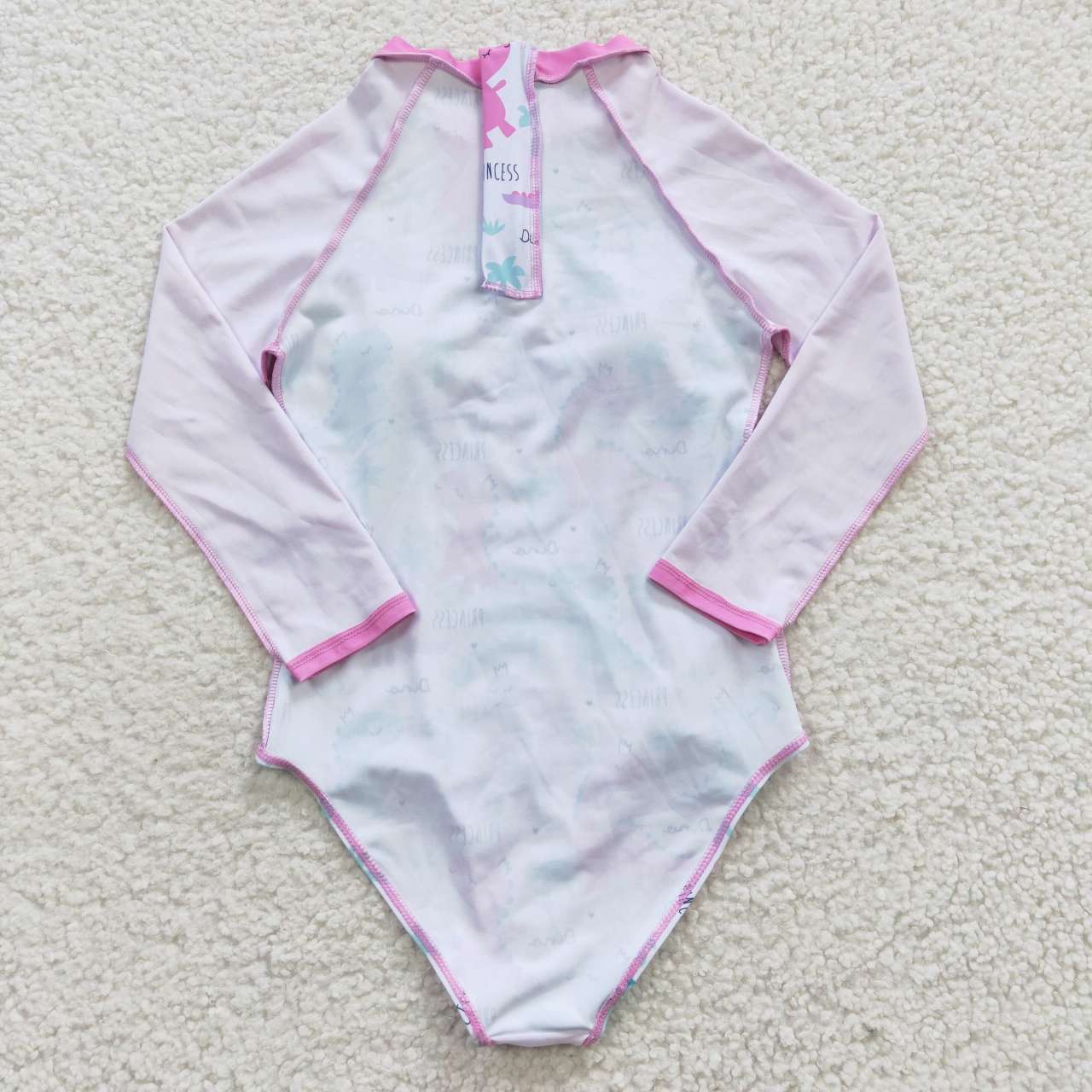 S0076 Pink Dinosaur Girls Long Sleeve Bathing Suits Swimsuits