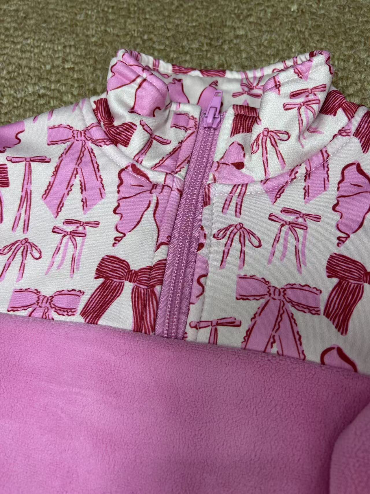 sherpa Christmas Santa/coquette bows pullover RTS Sibling Clothes