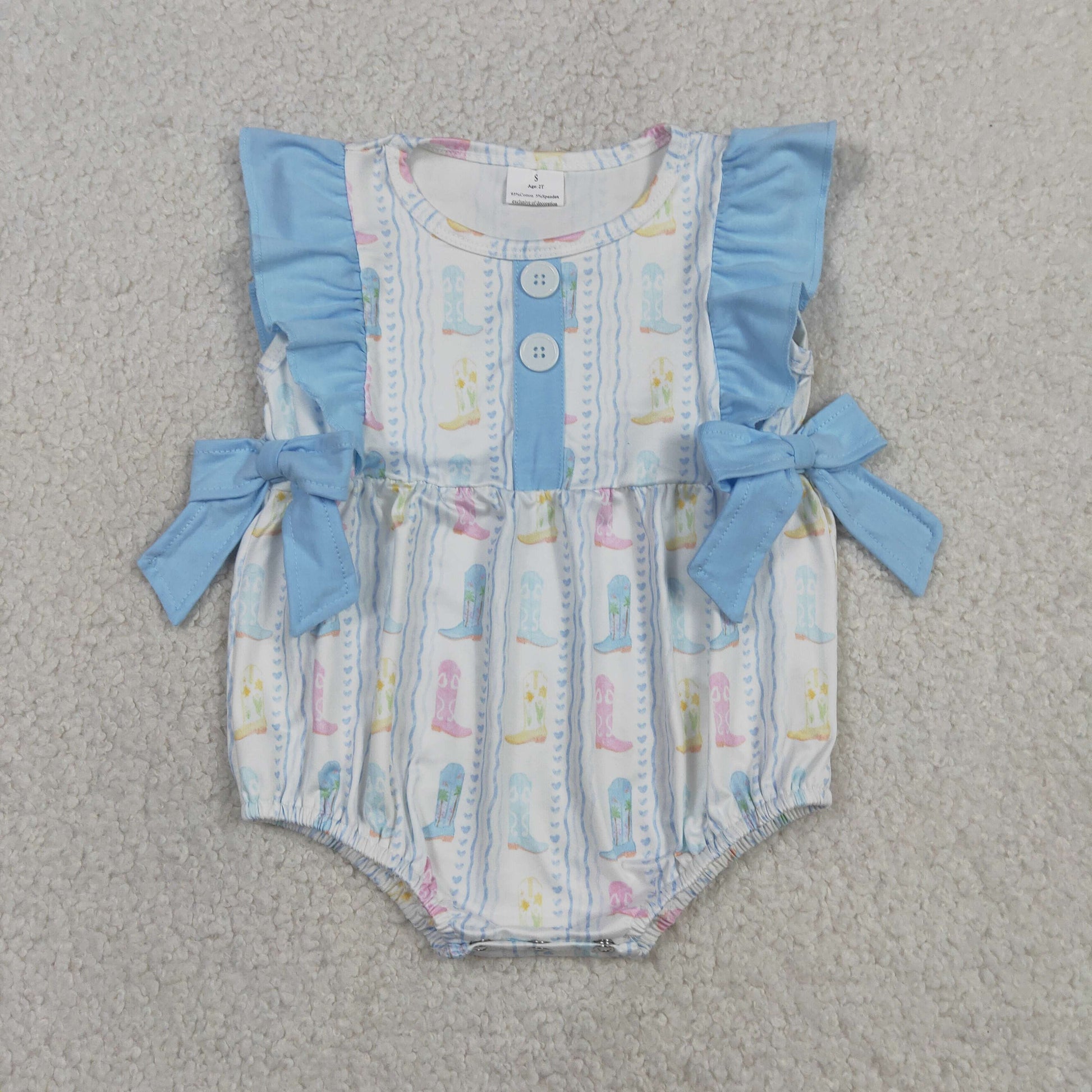 SR4088 Western Boots Blue Flutter Sleeve Girls Romper
