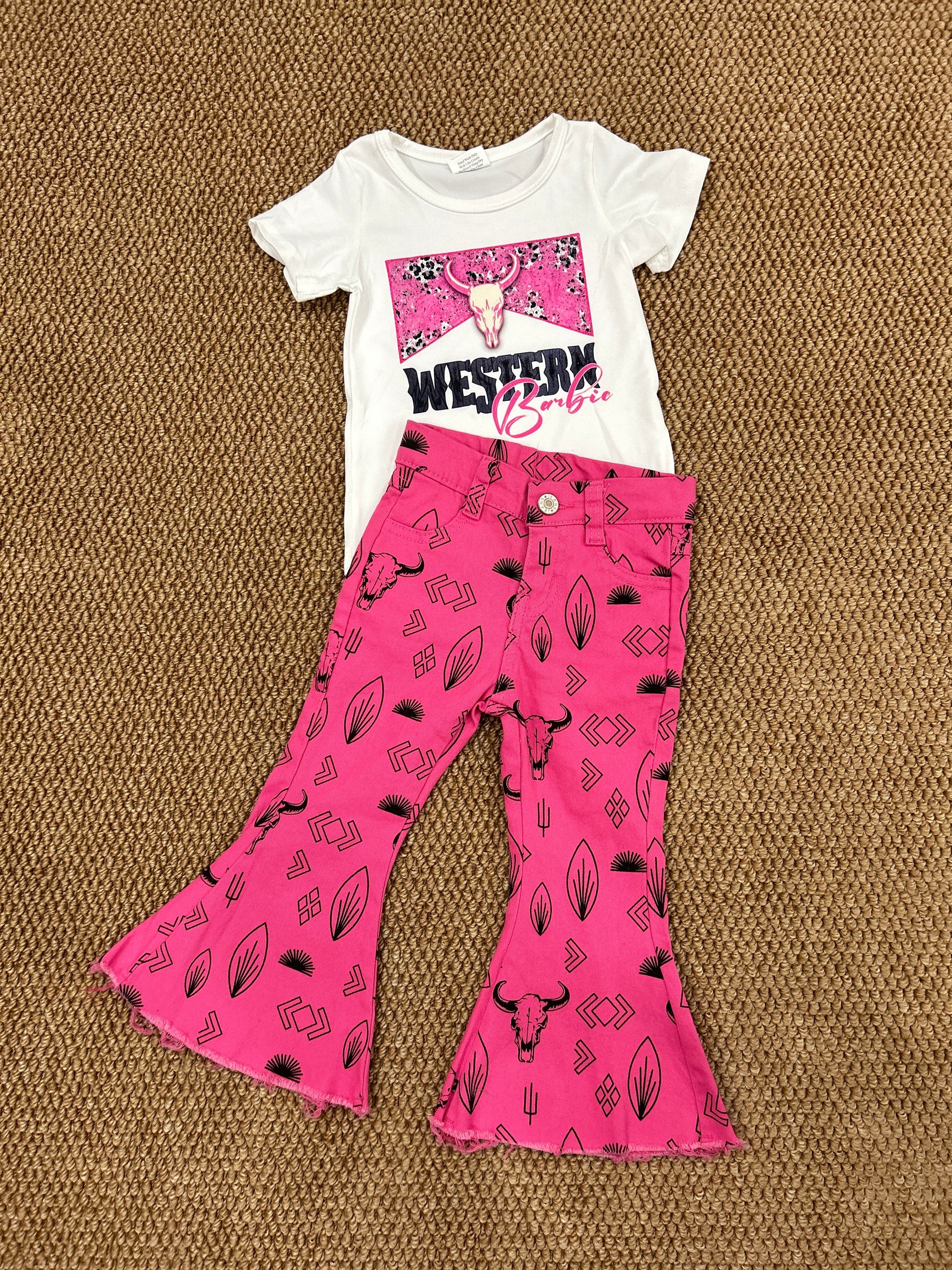 Western babie cow short sleeve hot pink jeans girls set baby girl cowgirl set